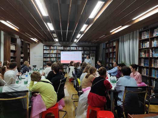 下午2时许,尽管暴雨如注,老校区二号教四楼图书馆内却暖意融融。土建院院长助理徐伟主持开场,国际交流合作中心副处长吴江渝在致辞中向远道而来的客人展示了武汉的独特魅力。他特别提到,武汉市作为拥有83所高校的"大学之城",每年吸引着来自170个国家的国际学生,并热情推介了学校国际人才联合培养项目。