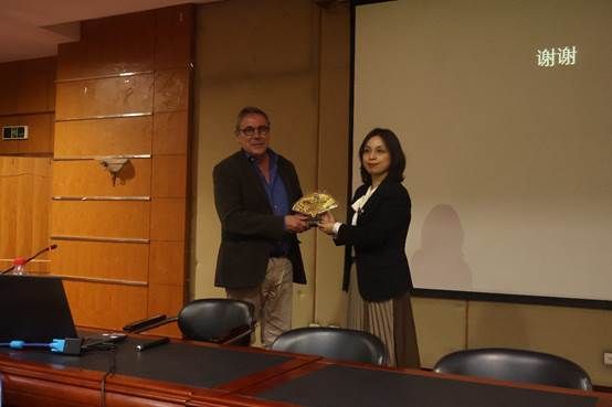 讲座结束后,院领导成轶书记对César Cabanas教授表示感谢,并送上学校纪念品。